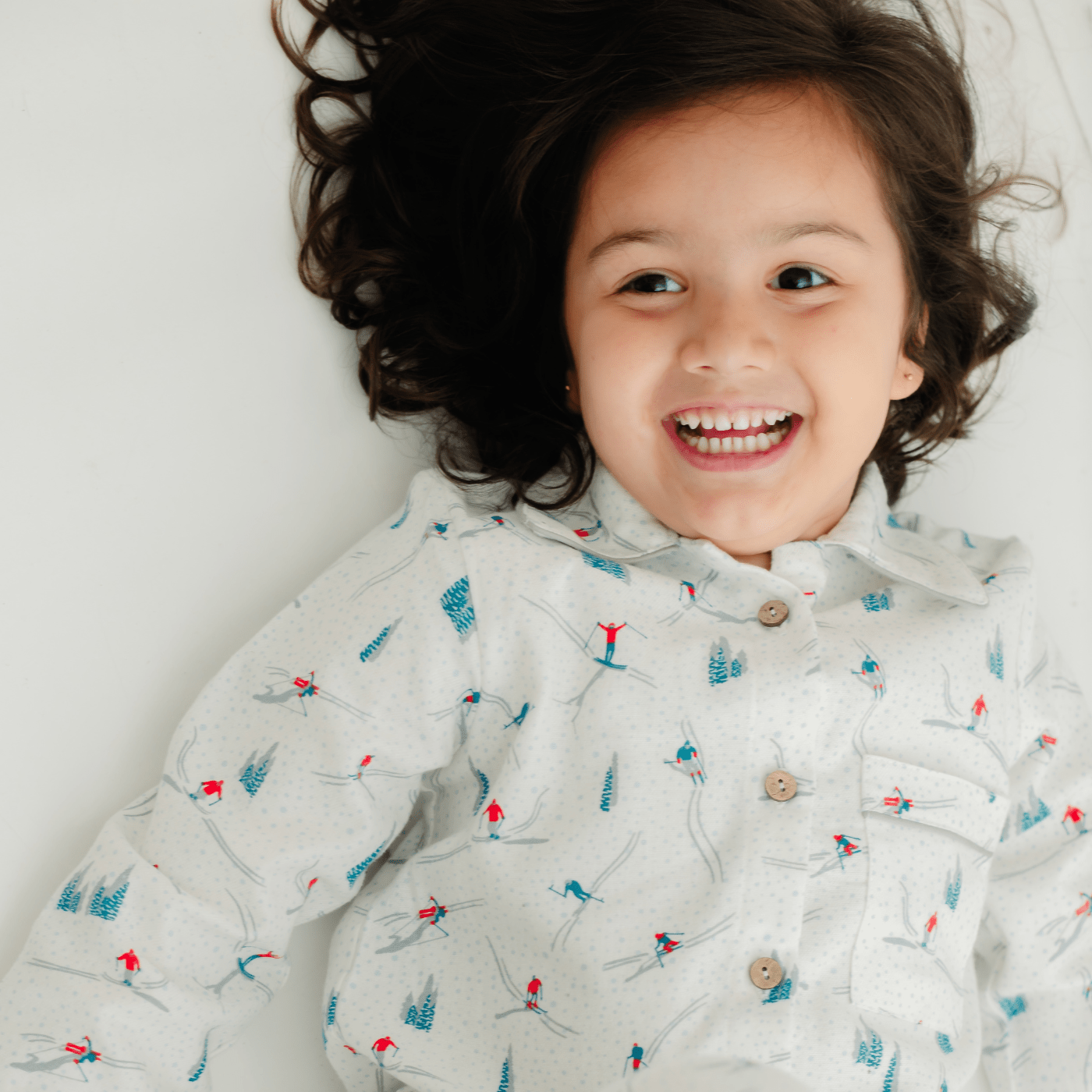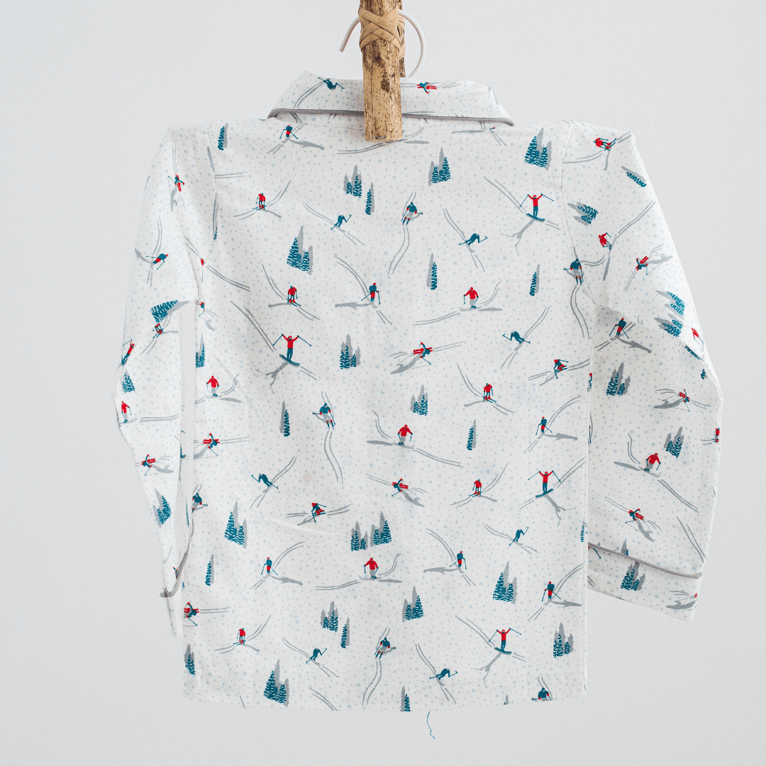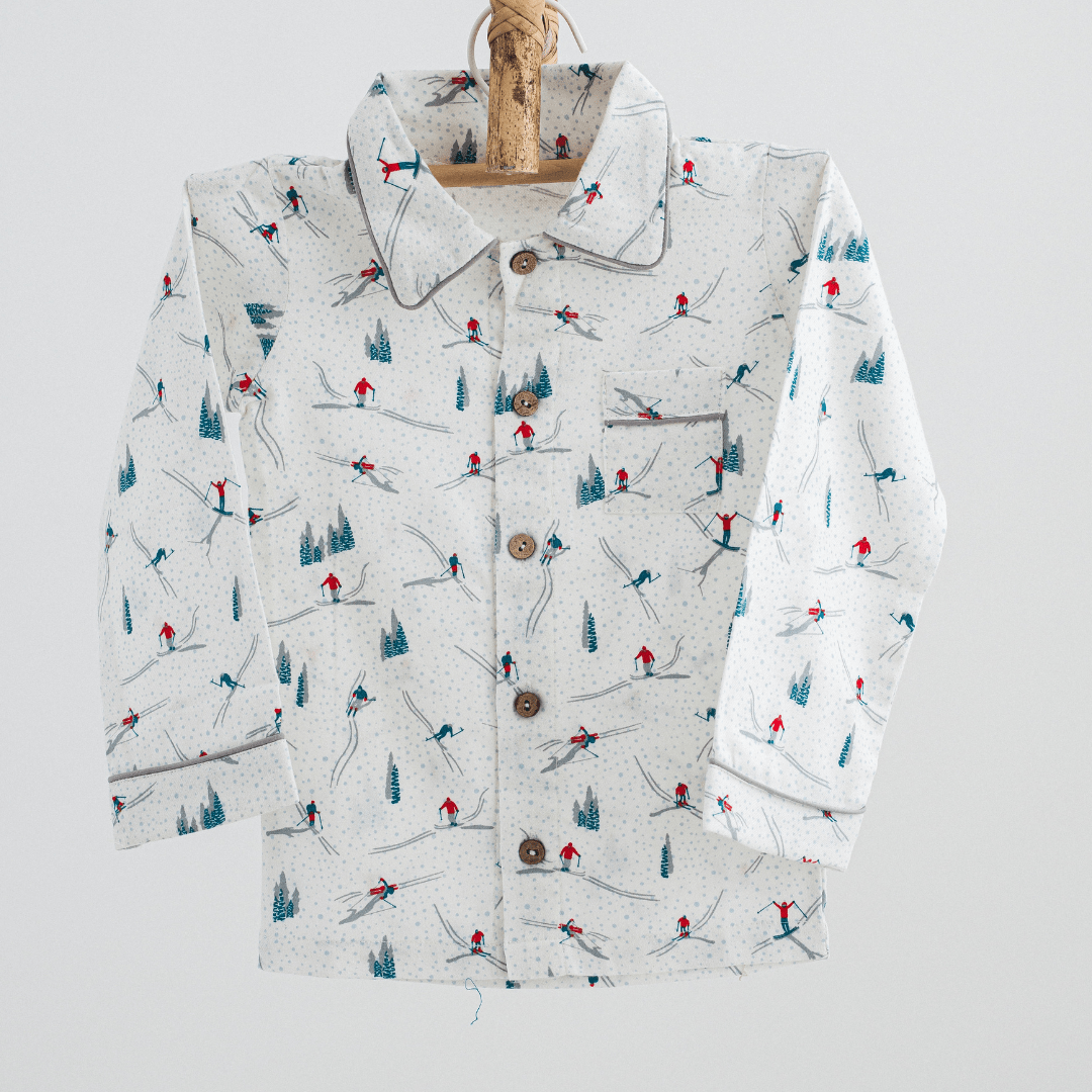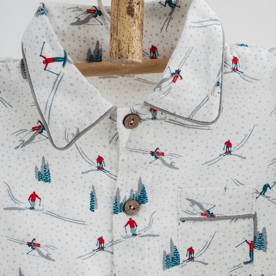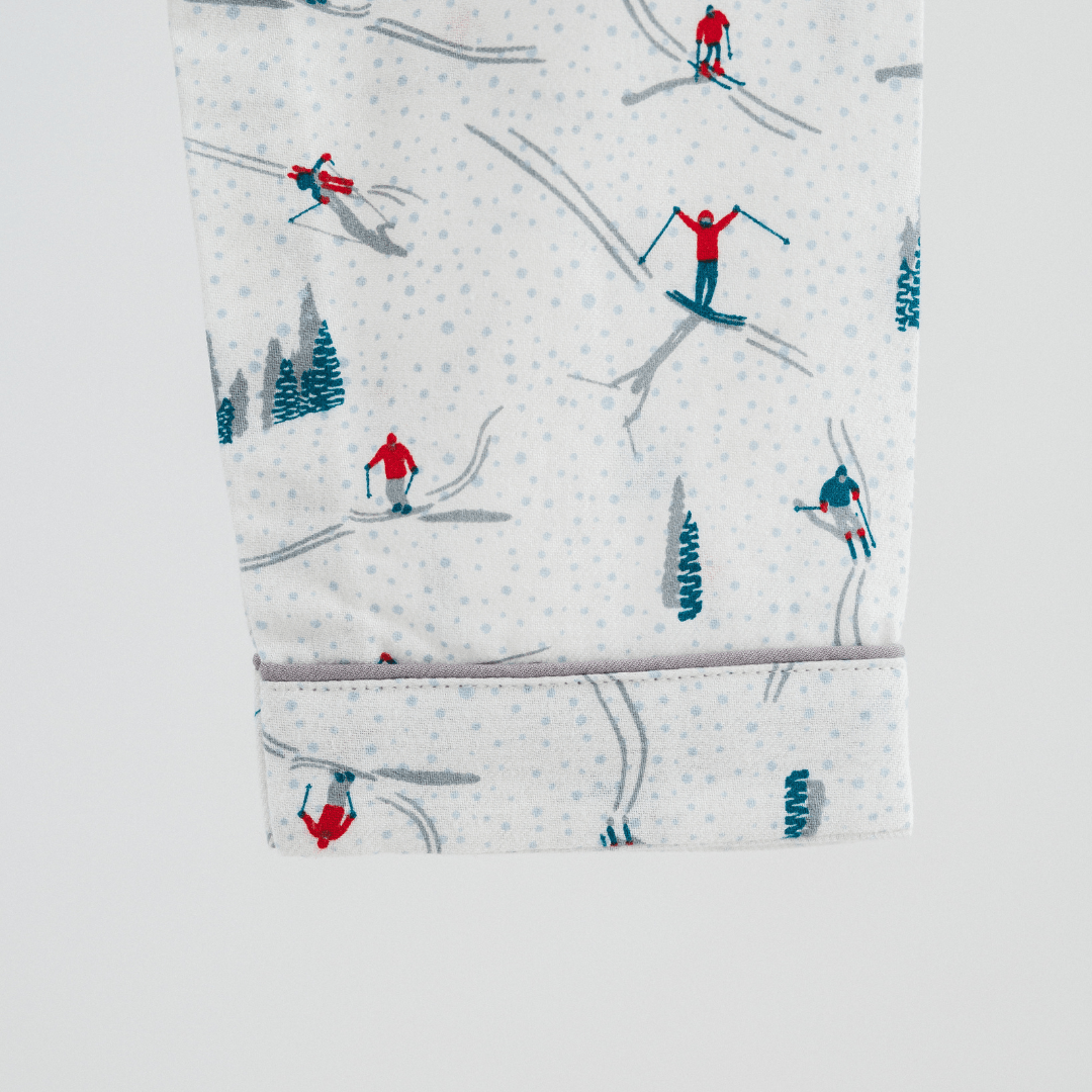 This flannel skiing print night suit is perfect for little ones who love winter sports, combining warmth, comfort, and playful style.