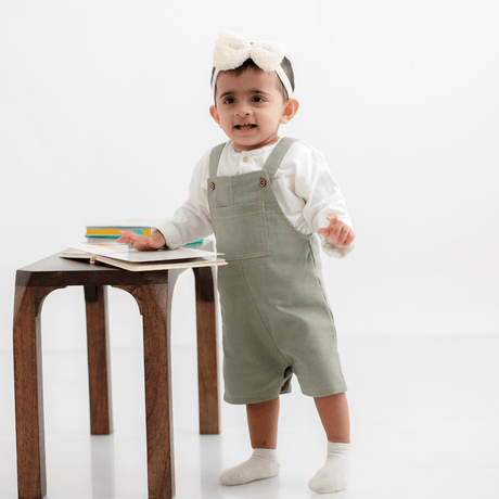 Pocketful of Play Linen Cotton Unisex Dungaree (Sage Green)