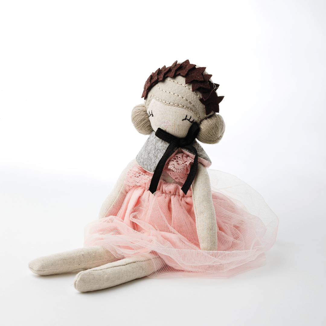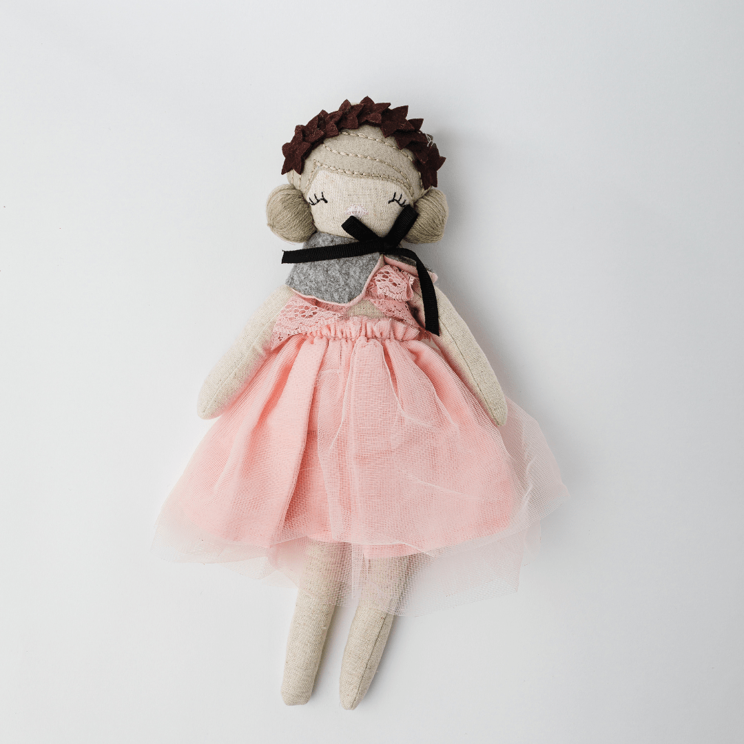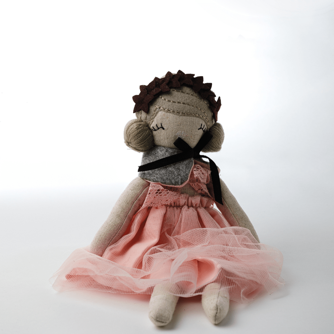 Handmade with love, the doll has cotton frame with dusty pink tulle dress and double bun hairstyle overlaid with star embellishments.
