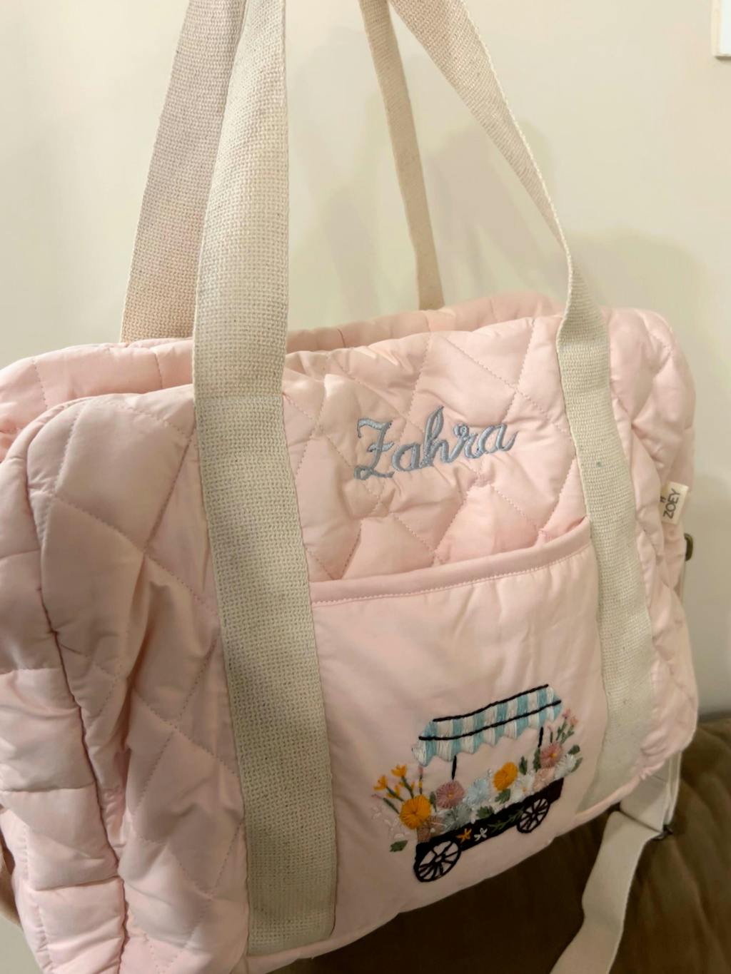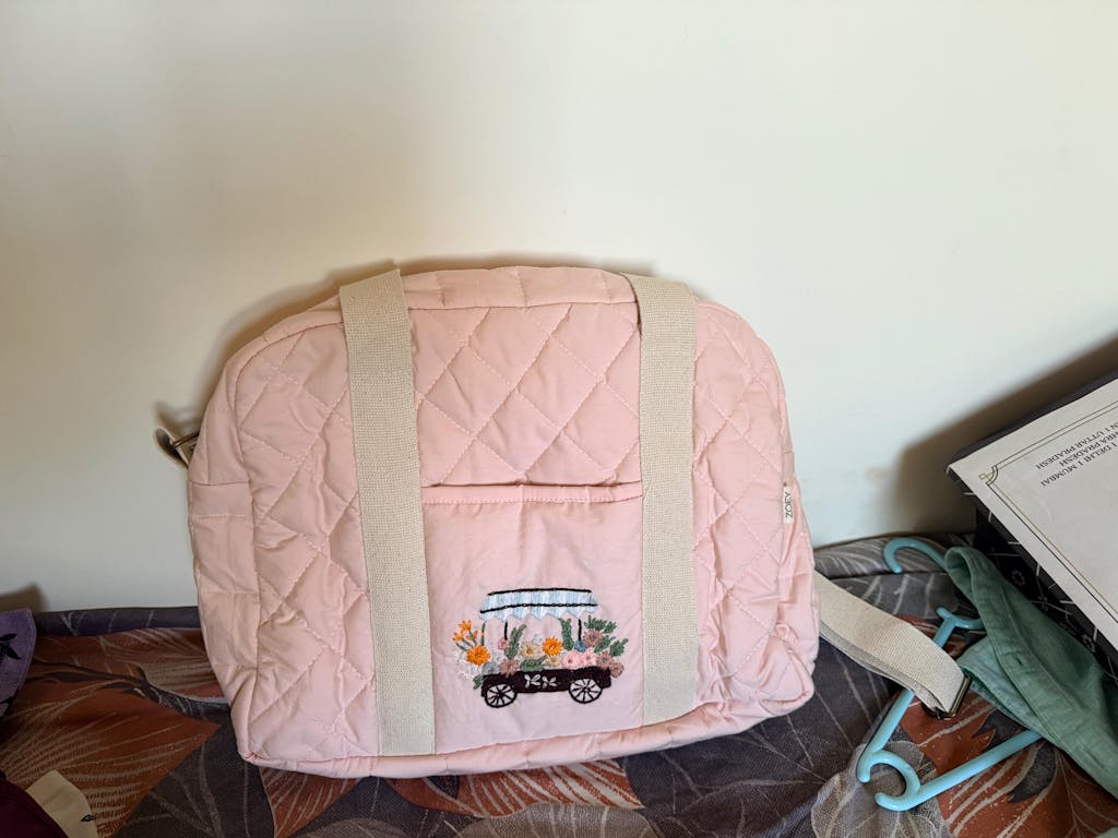 Hand Embroidered Meadow Cart Diaper Bag